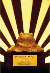 presented Greg Hunt a GOLDEN TOAD AWARD. Greg has been the