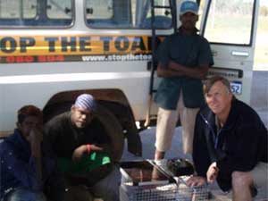 team learning to construct a cane toad trap at Timber Creek. |